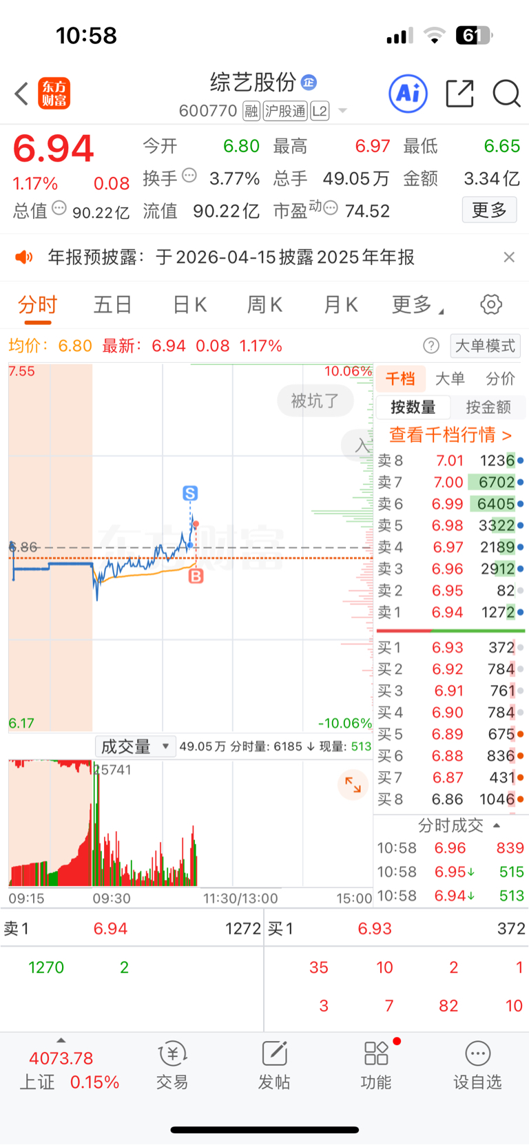 $综艺股份(SH600770)$ 我糊涂啊兄弟们