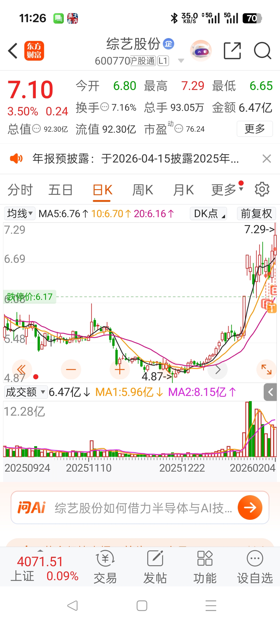 $综艺股份(SH600770)$ 不要慌加仓干