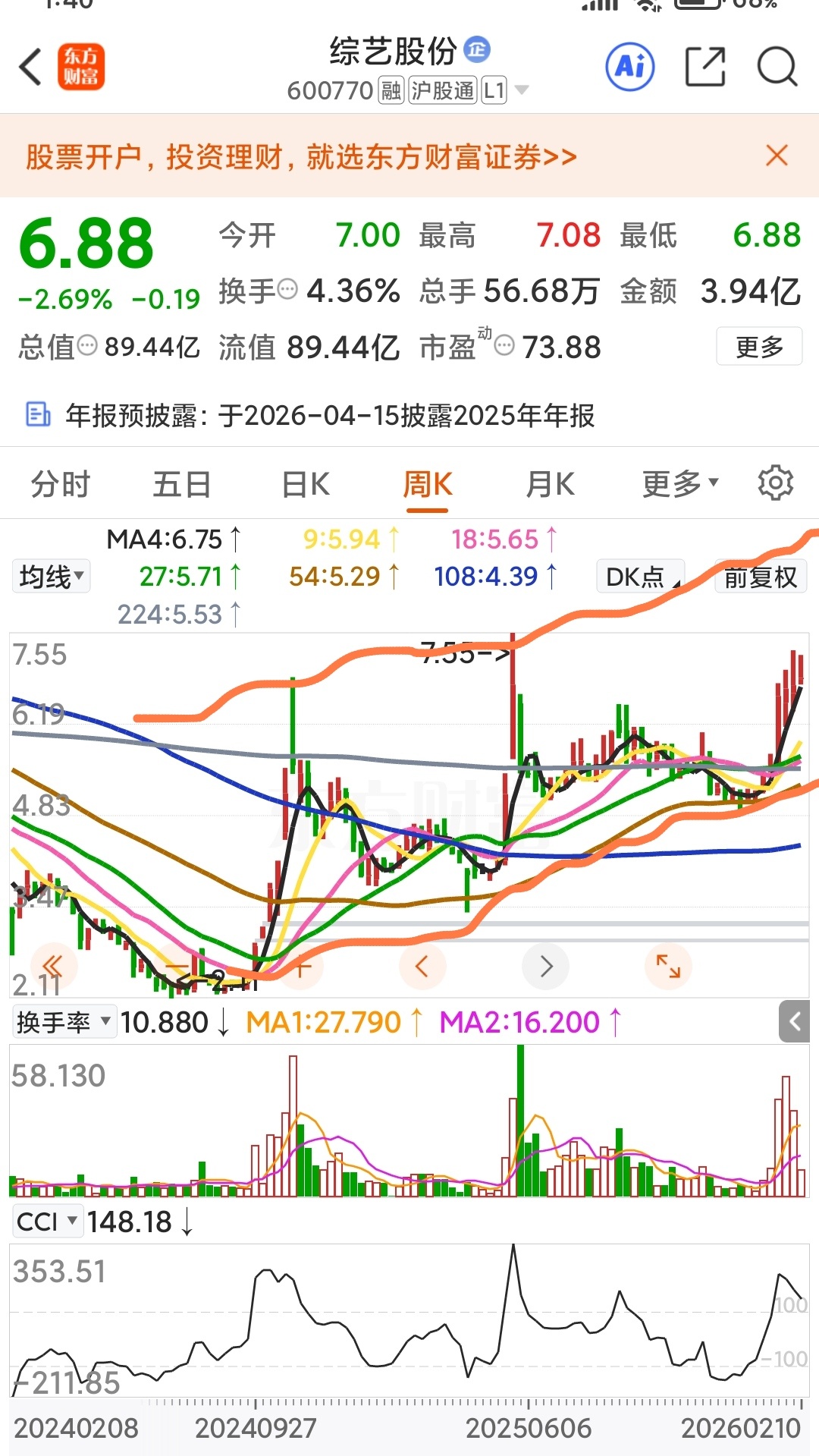数字3很神奇,事不过3多有3,综艺股份24.25年,两波行情两个高点,26年的高点难道高不过前两年?我深表怀疑,我满心期待,我相信不大可能!