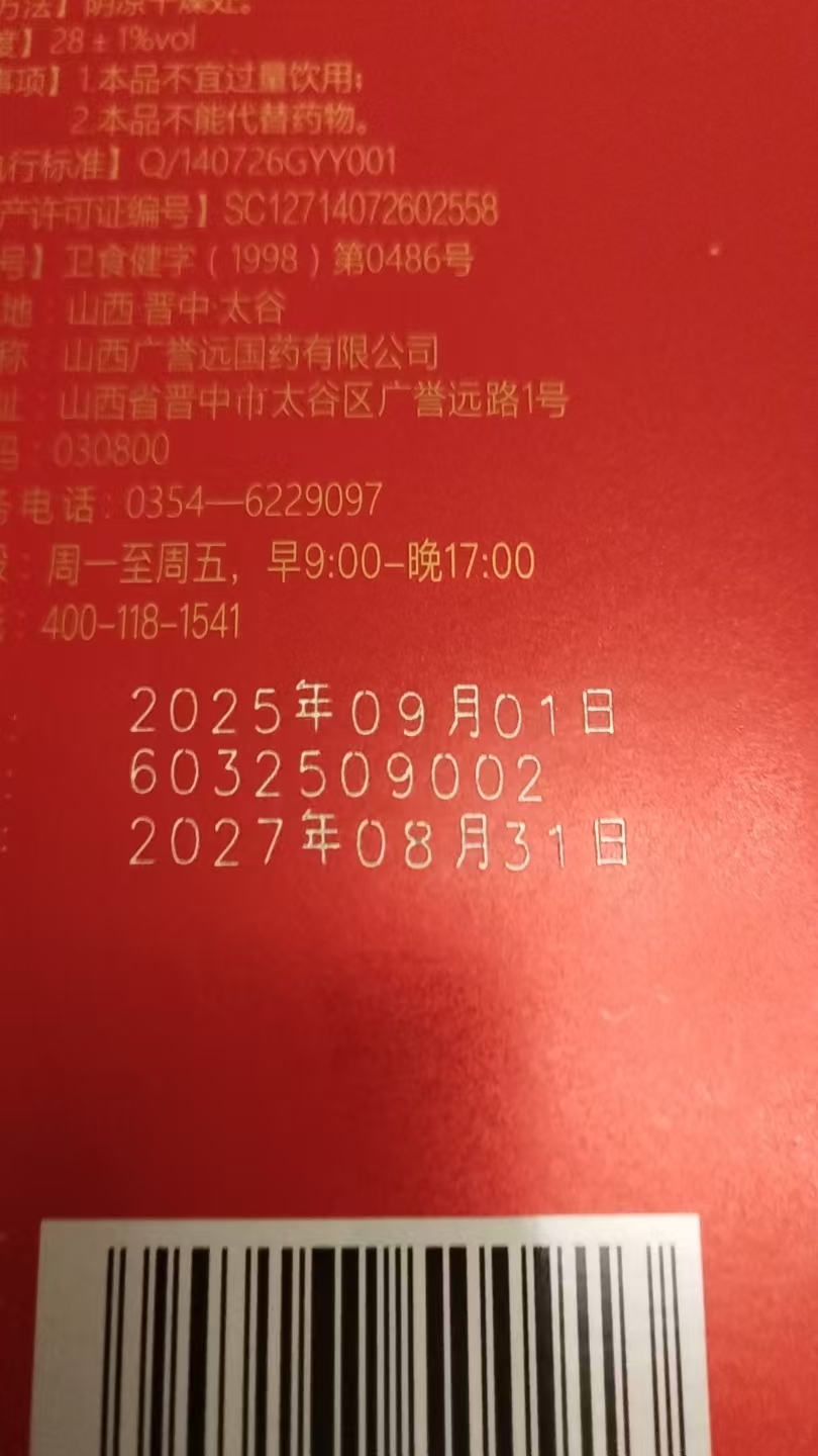$广誉远(SH600771)$ 双十一买了一箱红宝石,都是 25 年 9 月生产的,不错哦