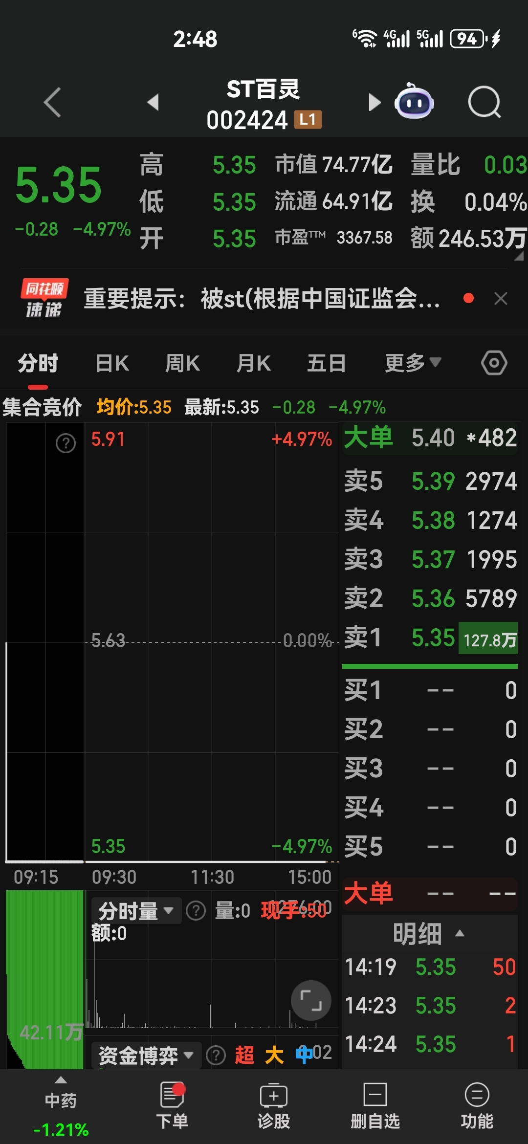 有脑子的自己想,贵州百灵财务造假停盘出来是St跌停,自己想。