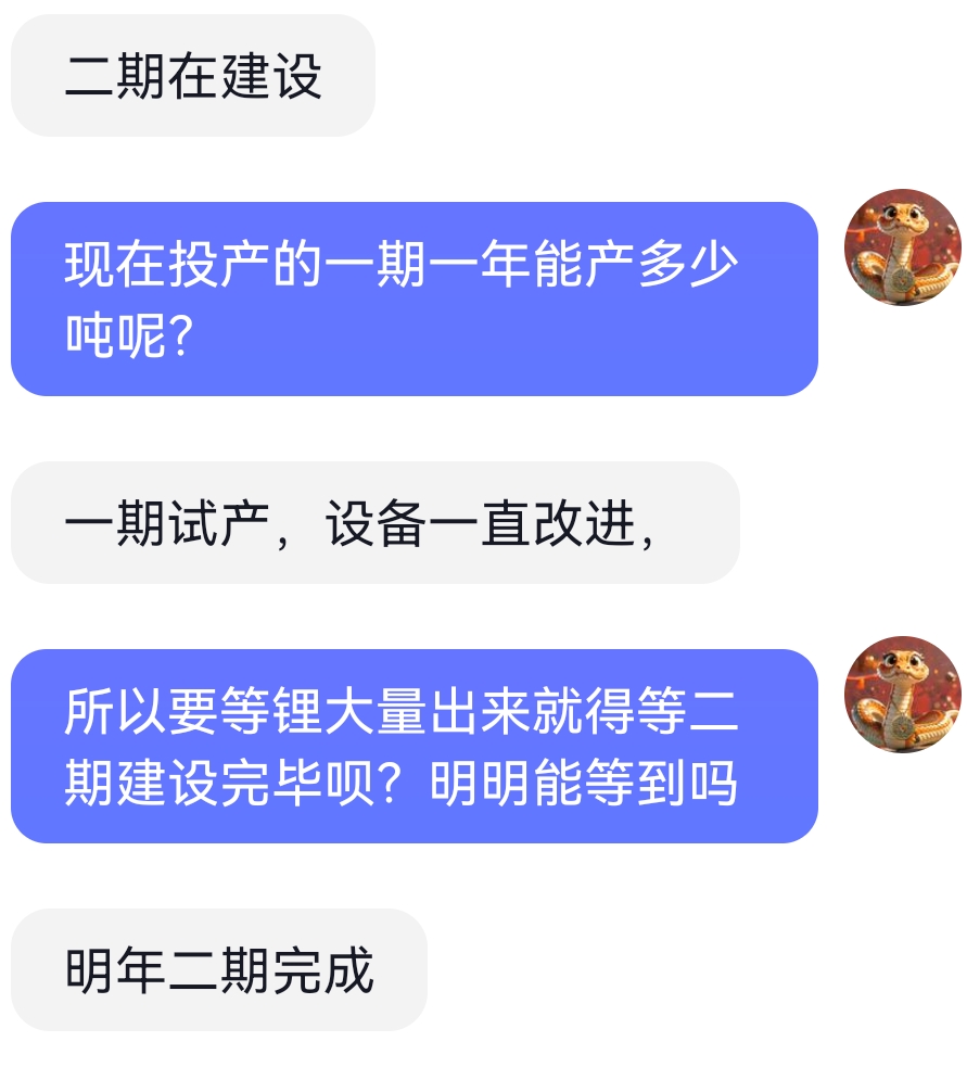 $西藏城投(SH600773)$ 已经向安装设备的工人打听到了,结则茶卡一期早已投产,二期在建设中,明年建好,这两天总有无脑唱空的发言,既然不看好还在这里不停发言,老说没有锂没有矿ppt,这不是此地无银三百两吗,千万别中计