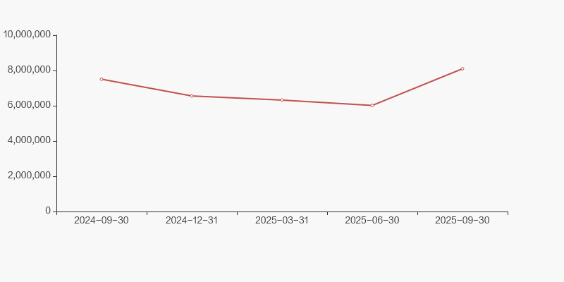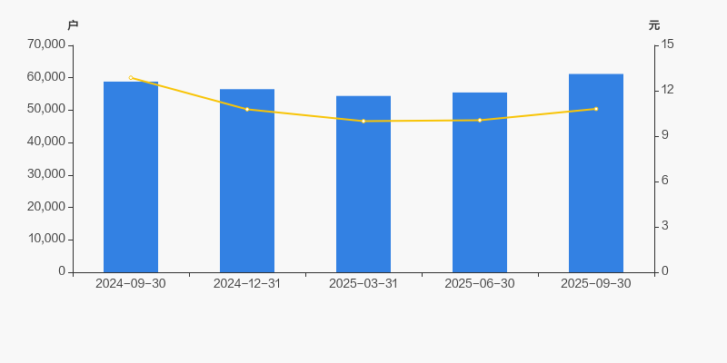 截至2025年9月30日,公司最新总股本为9.52亿股,且均为流通股。户均持有流通股数量由上期的1.72万股下降至1.56万股,户均流通市值16.8万元。