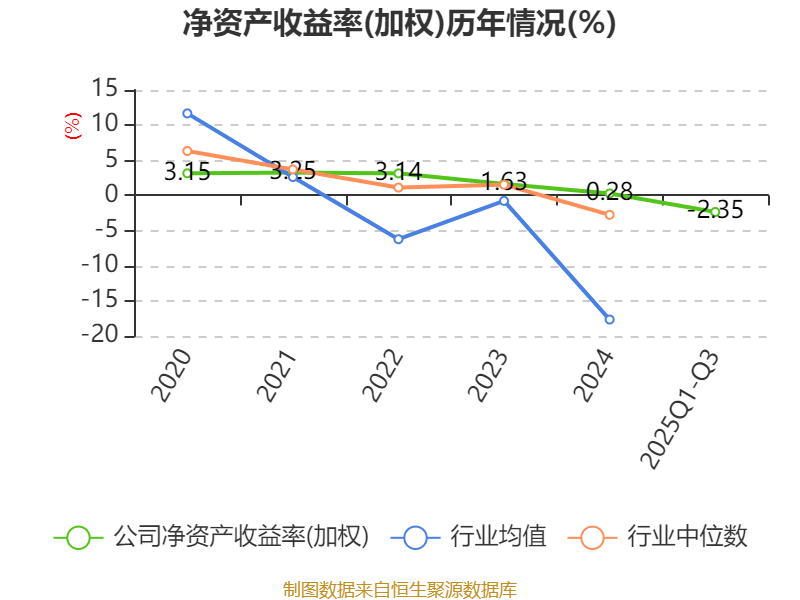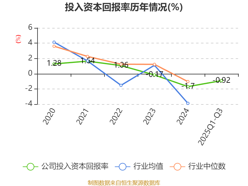 盈利能力方面, 2025年前三季度公司加权平均净资产收益率为-2.35%,同比上升1.16个百分点。公司2025年前三季度投入资本回报率为-0.92%,较上年同期上升0.3个百分点。