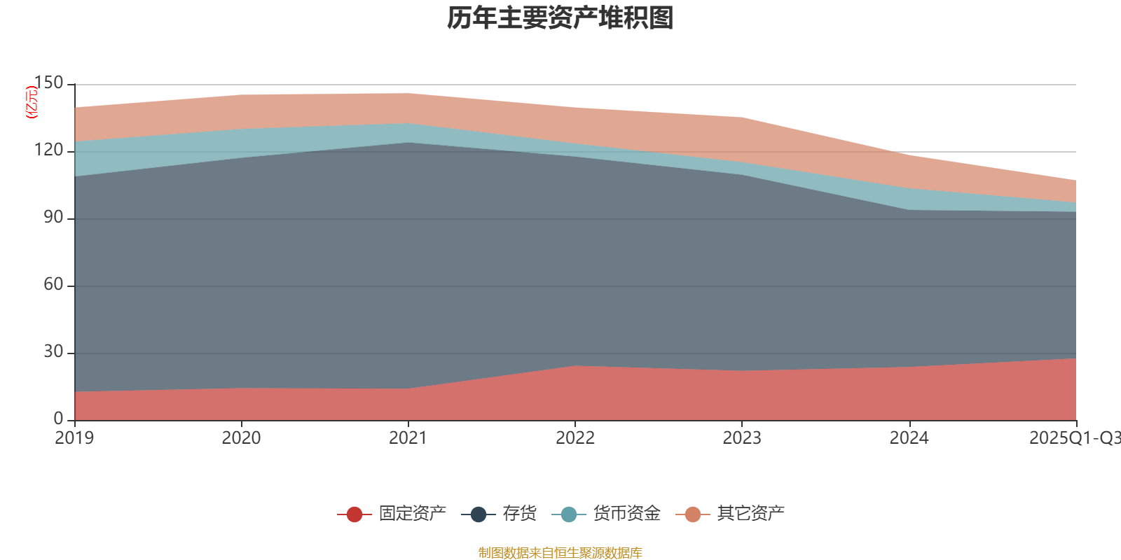 资产重大变化方面,截至2025年三季度末,公司固定资产较上年末增加16.08%,占公司总资产比重上升5.68个百分点;货币资金较上年末减少57.41%,占公司总资产比重下降4.34个百分点;在建工程合计较上年末减少100%,占公司总资产比重下降3.35个百分点;存货较上年末减少6.57%,占公司总资产比重上升1.96个百分点。