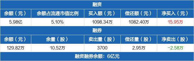 西藏城投:融资净买入15.95万元,融资余额5.98亿元(12-08)