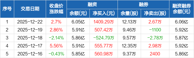 西藏城投:融资净买入1409.29万元,融资余额6.05亿元(12-22)