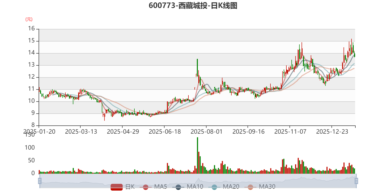 中证智能财讯西藏城投(600773)1月19日晚间披露2025年度业绩预告,预计2025年归母净利润亏损5.2亿元,上年同期盈利1254.99万元;扣非净利润亏损5.23亿元,上年同期亏损3.09亿元。以1月19日收盘价计算,西藏城投目前市盈率(TTM)约为-25.07倍,市净率(LF)约2.76倍,市销率(TTM)约7.26倍。