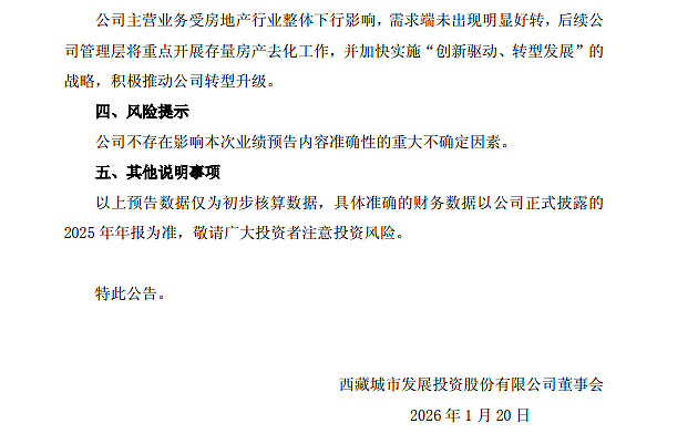 西藏城投预亏5.2亿,但公告里明确说要加快“转型发展”,转型发展只能是用房地产资