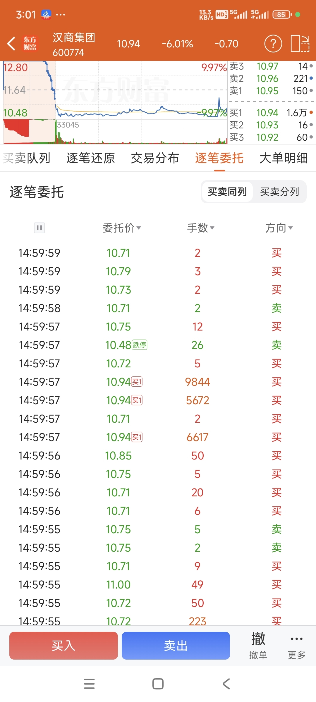 $汉商集团(SH600774)$ 感谢这3位大哥尾盘拉了两个点,不然亏钱了