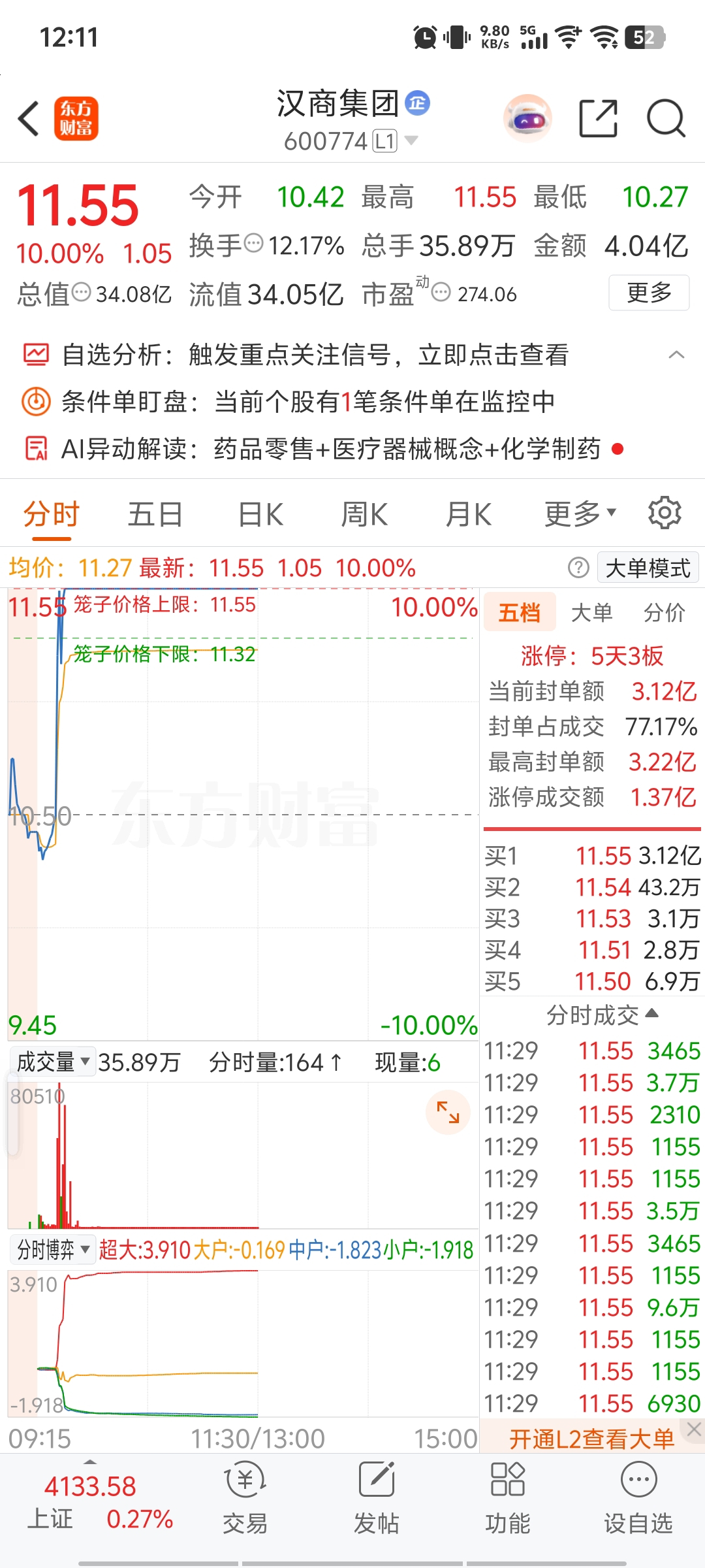 $汉商集团(SH600774)$ 我的条件单差点成交