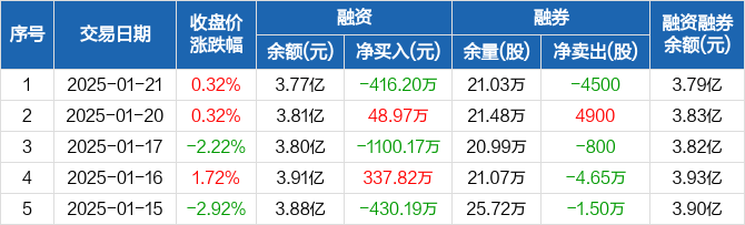南京熊猫:融资净偿还416.2万元,融资余额3.77亿元(01-21)