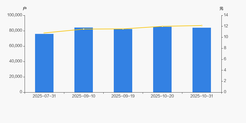 2025年7月31日至今,公司股东户数显著增长,区间涨幅为10.60%。2025年7月31日至2025年10月31日区间股价上涨12.50%。