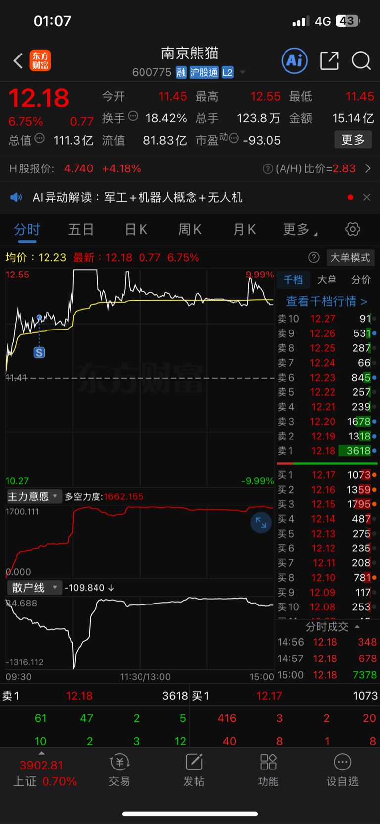 $南京熊猫(SH600775)$ 还是对上了,赚认知内的钱