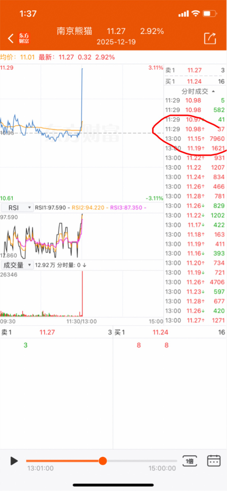 $南京熊猫(SH600775)$ 一开盘挂11.15八千手这量化自己玩去