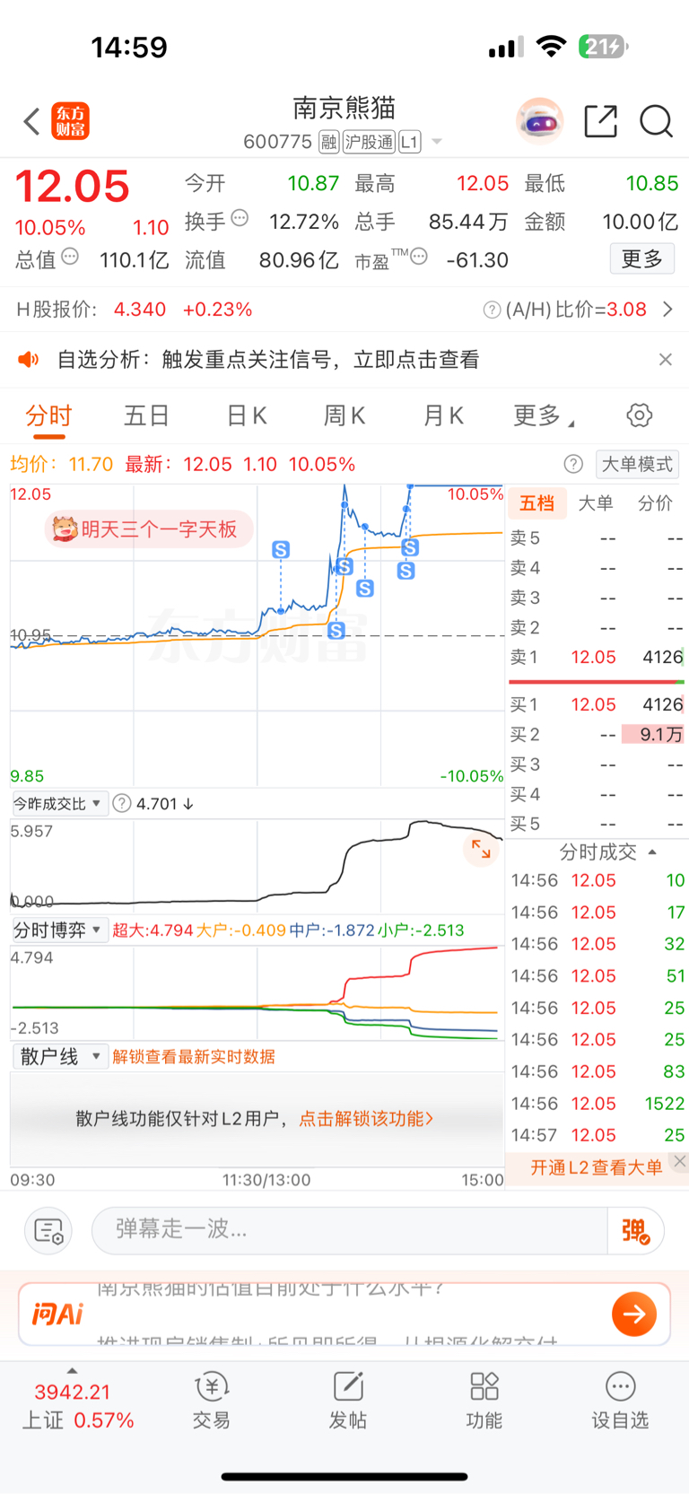 $南京熊猫(SH600775)$ 明天做t上涨