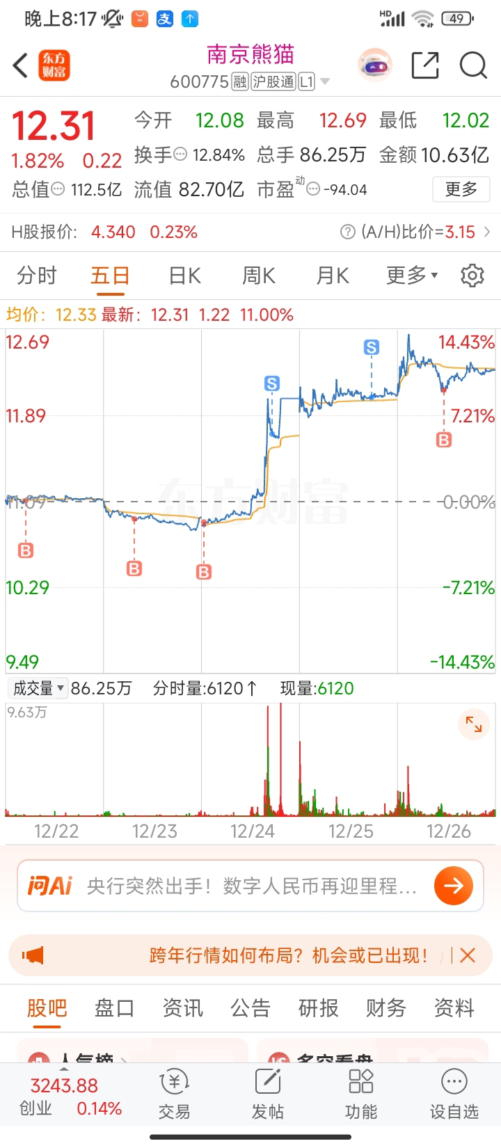 $南京熊猫(SH600775)$ 还好买回来了