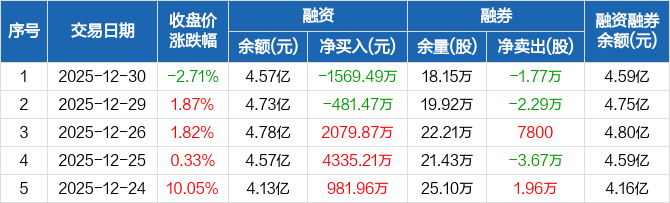 南京熊猫:融资净偿还1569.49万元,融资余额4.57亿元(12-30)