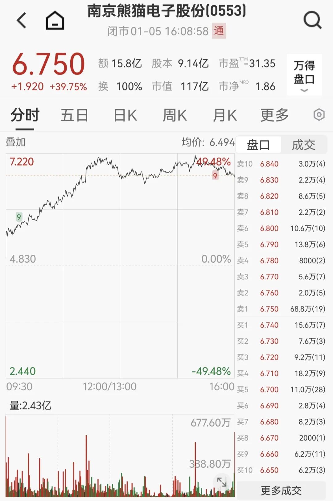 南京熊猫电子一度狂飙超49%