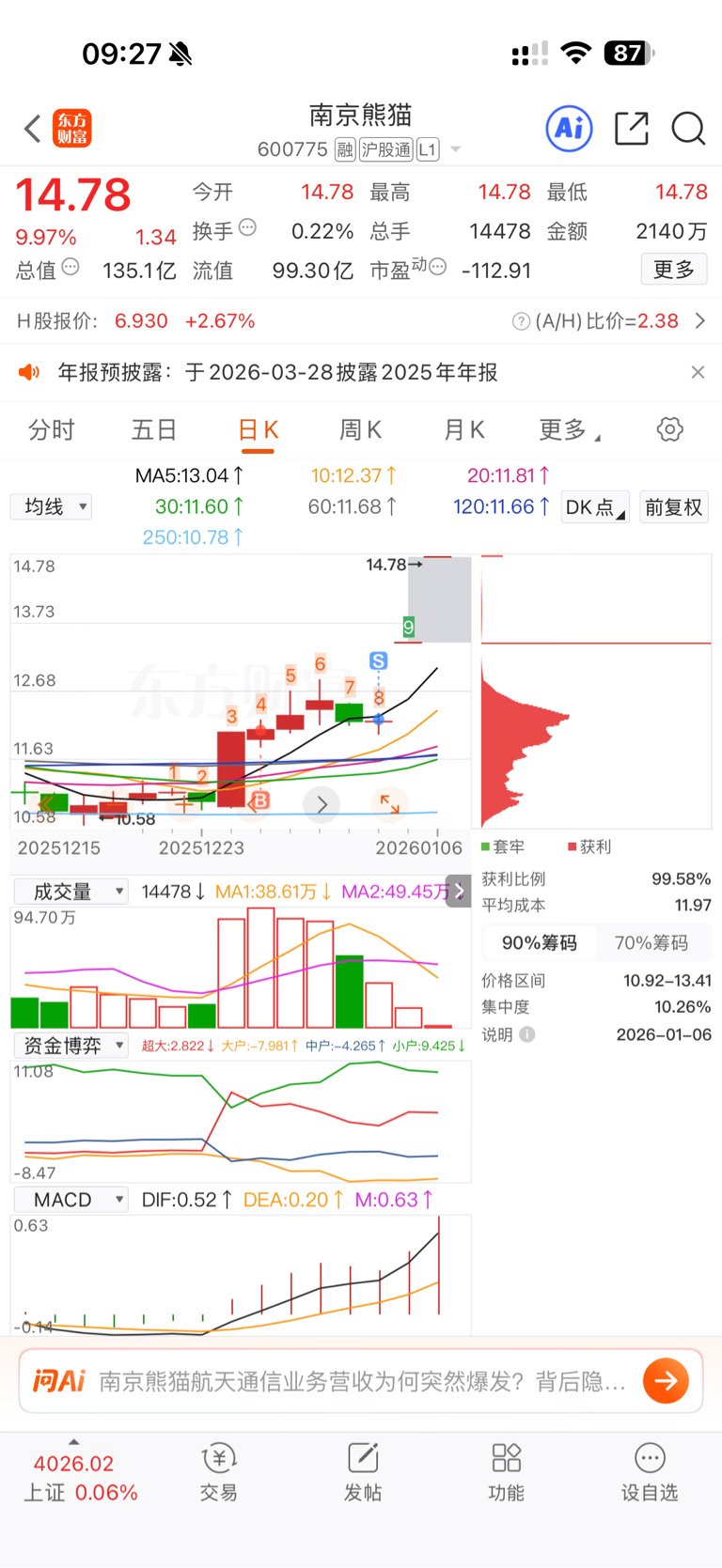 $南京熊猫(SH600775)$ 我该说些什么呢