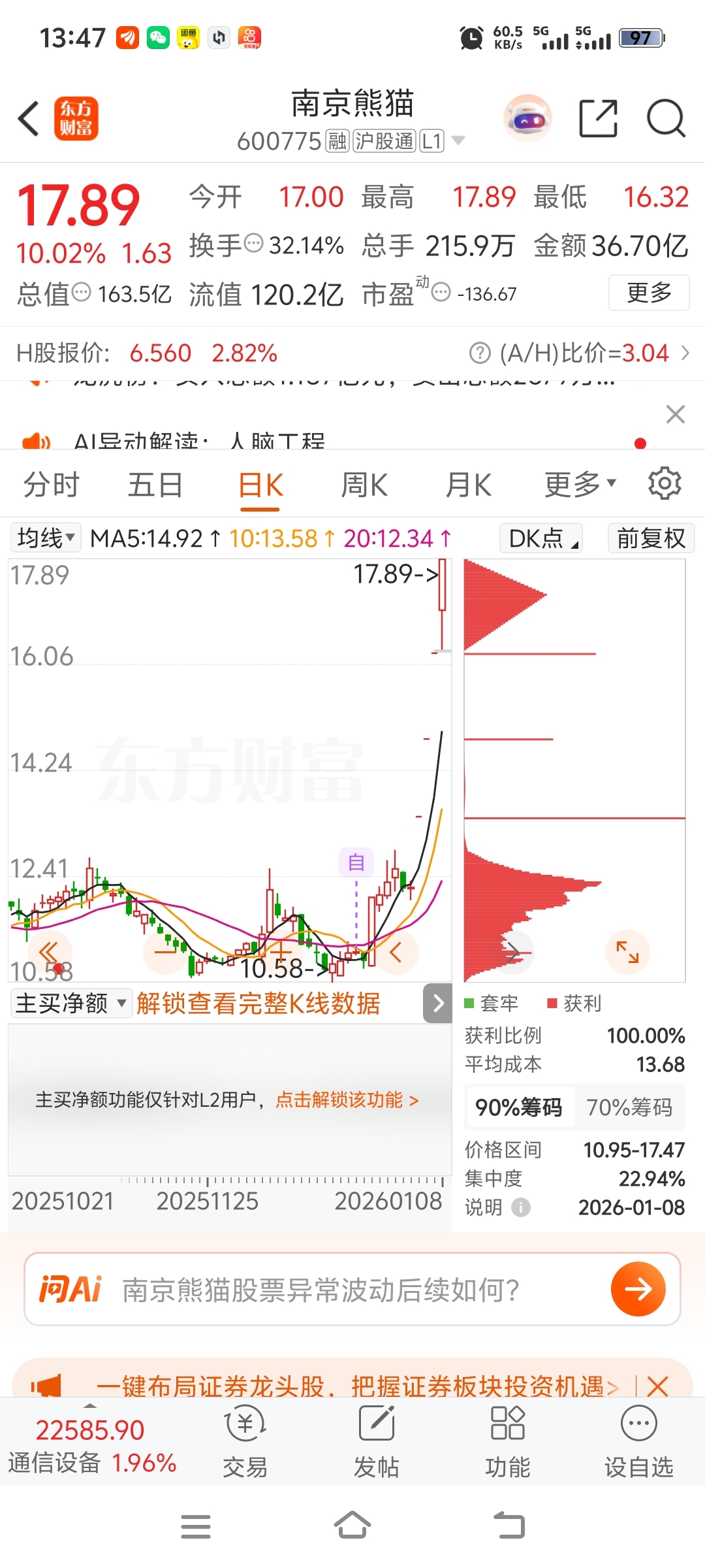$南京熊猫(SH600775)$