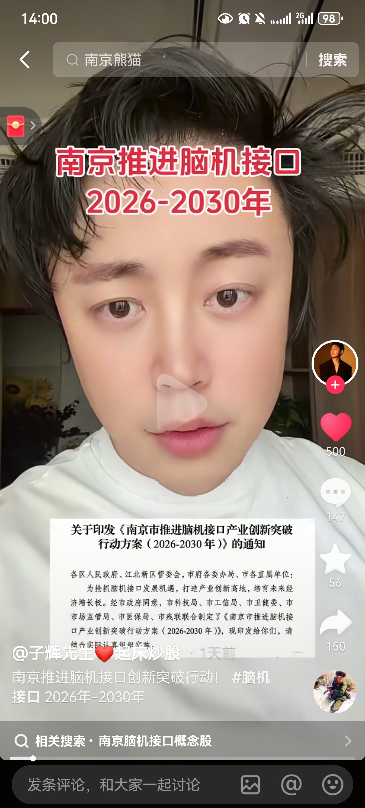 $南京熊猫(SH600775)$ 是南京的脑机接口吧?