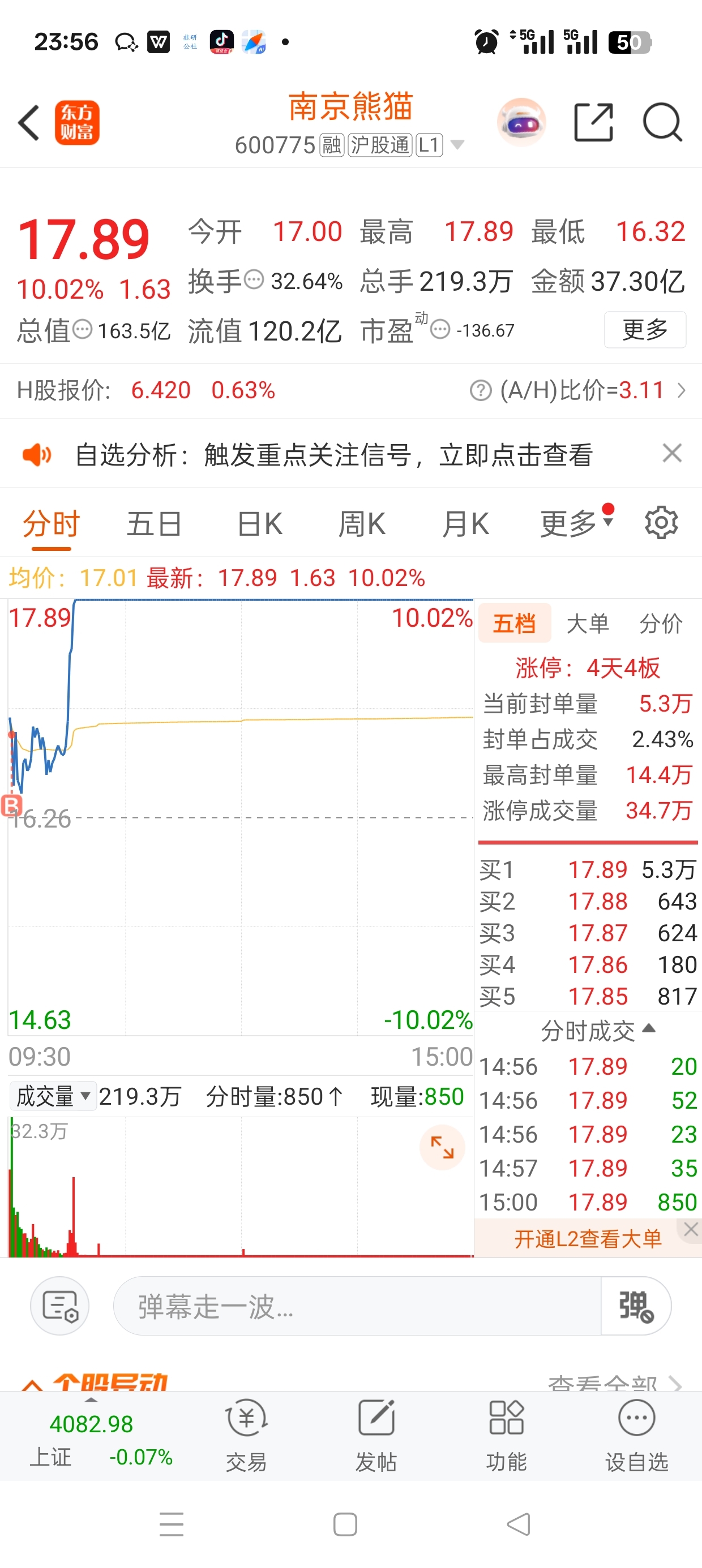 早上在熊猫和岩山之间选择了熊猫,主要是因为熊猫市值比岩山小,容易拉升,还有就是熊