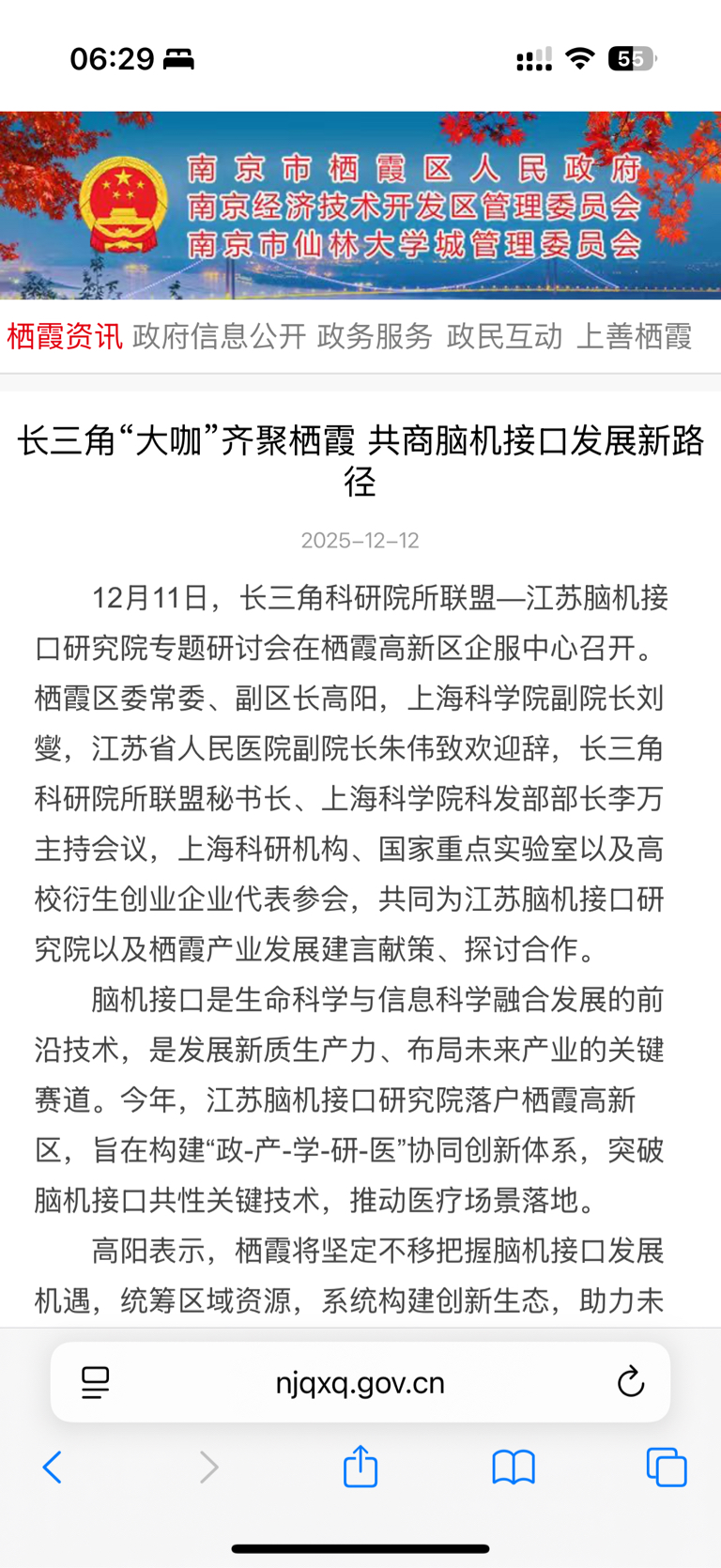 脑机接口“国家队”落子南京(截图1,南京政府官网),脑机接口研讨会在南京栖霞区召