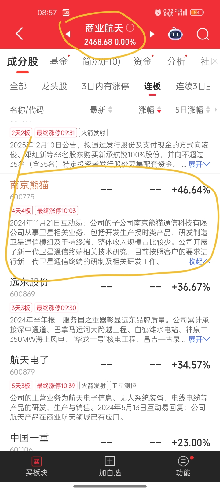 南京熊猫有商业航天概念很可能成为新的补涨连板龙头