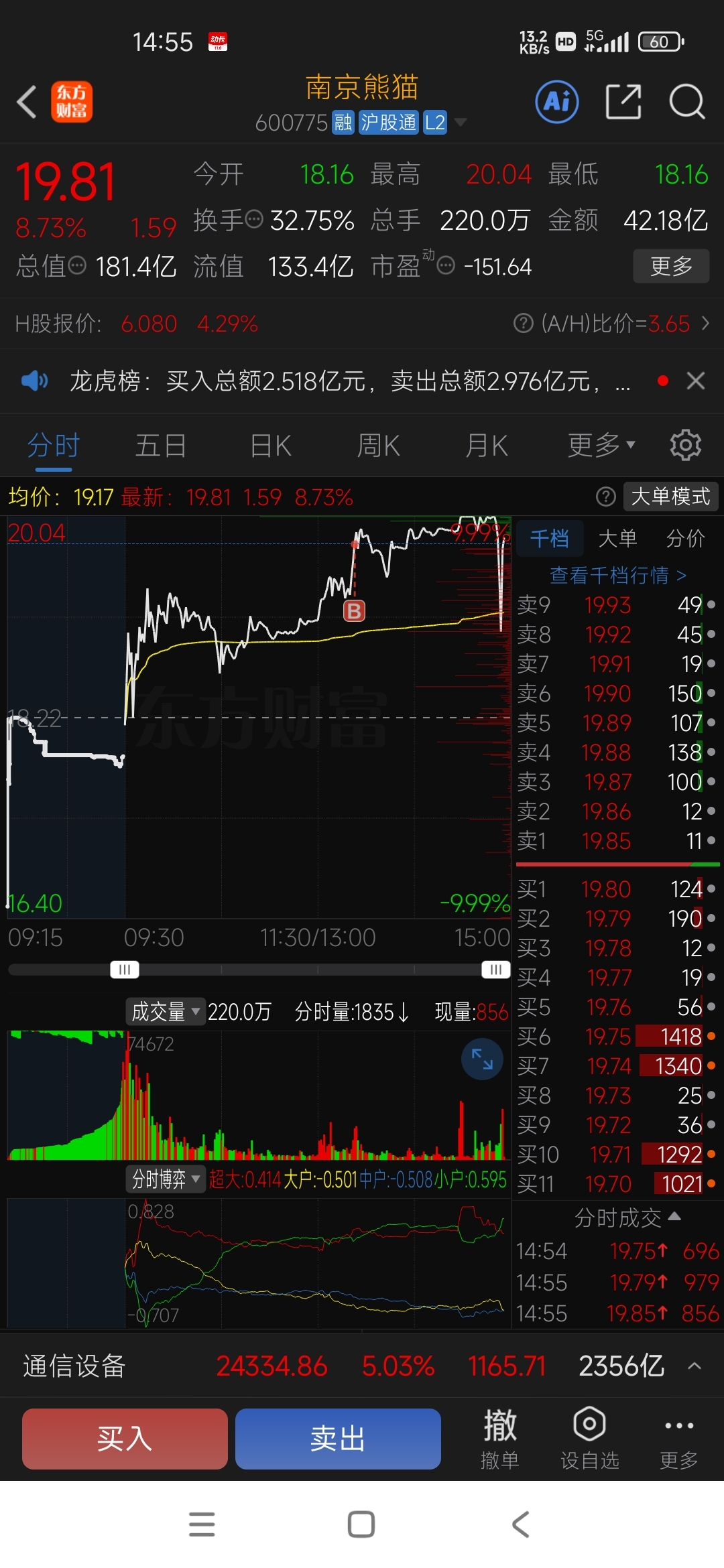 $南京熊猫(SH600775)$ 别吓我