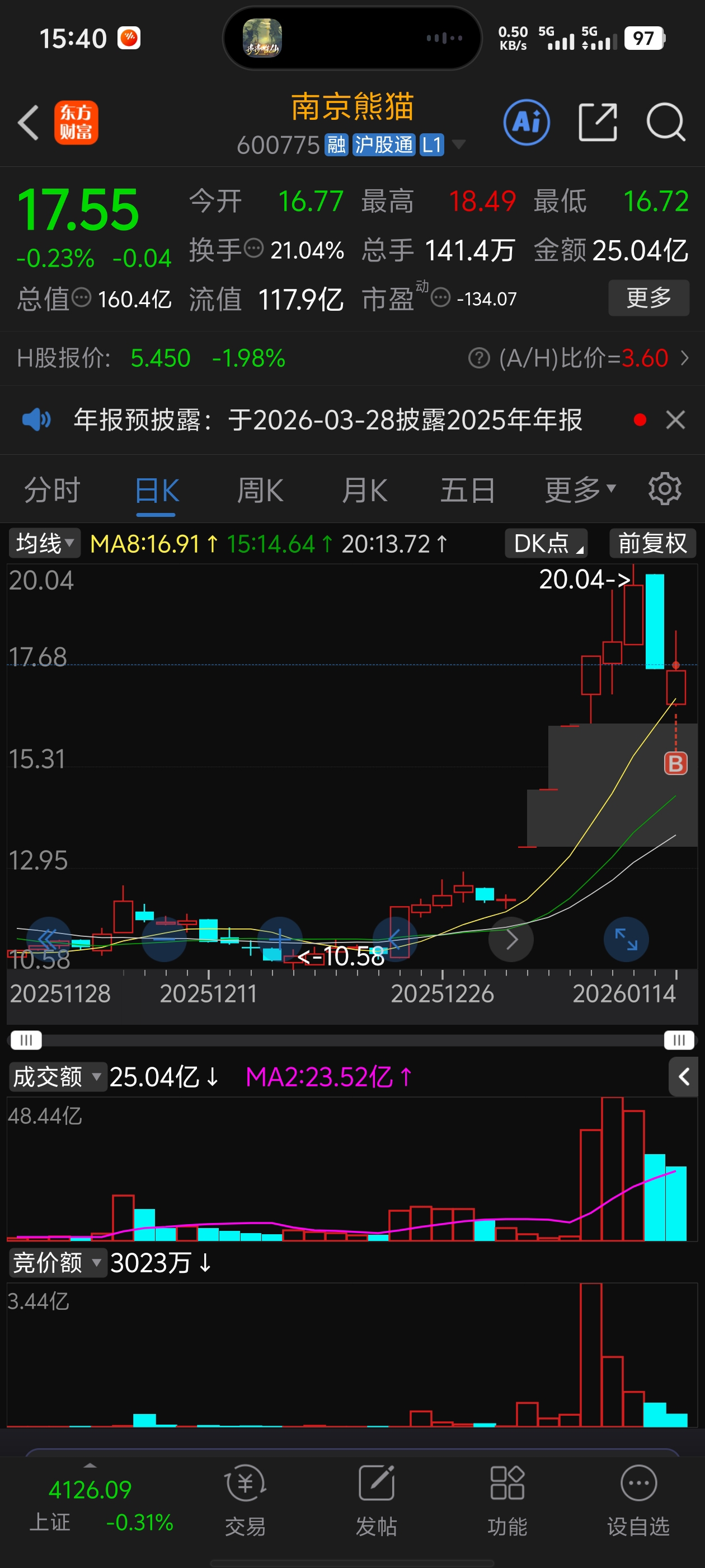 $南京熊猫(SH600775)$ 两点半接了熊猫