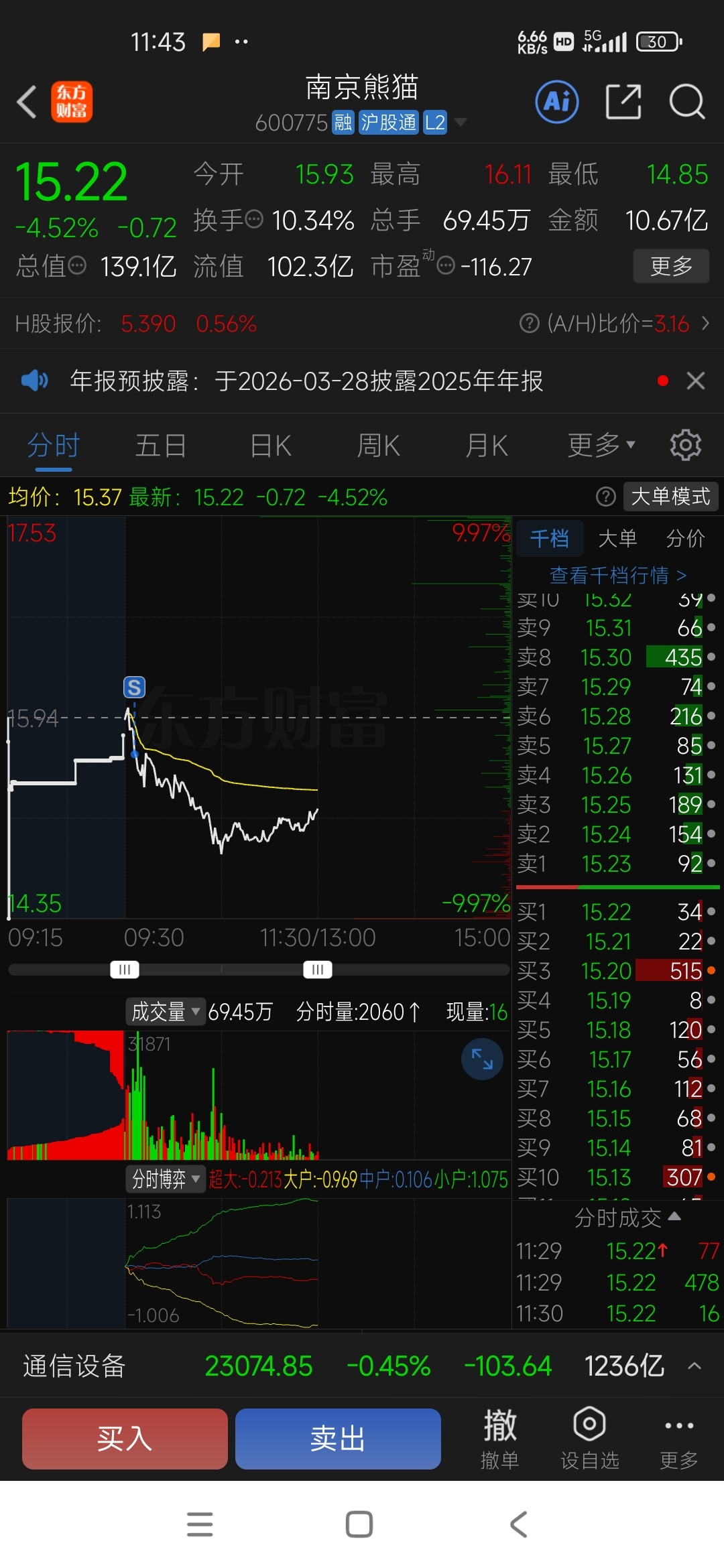 $南京熊猫(SH600775)$ 割了亏20个点,太失望了