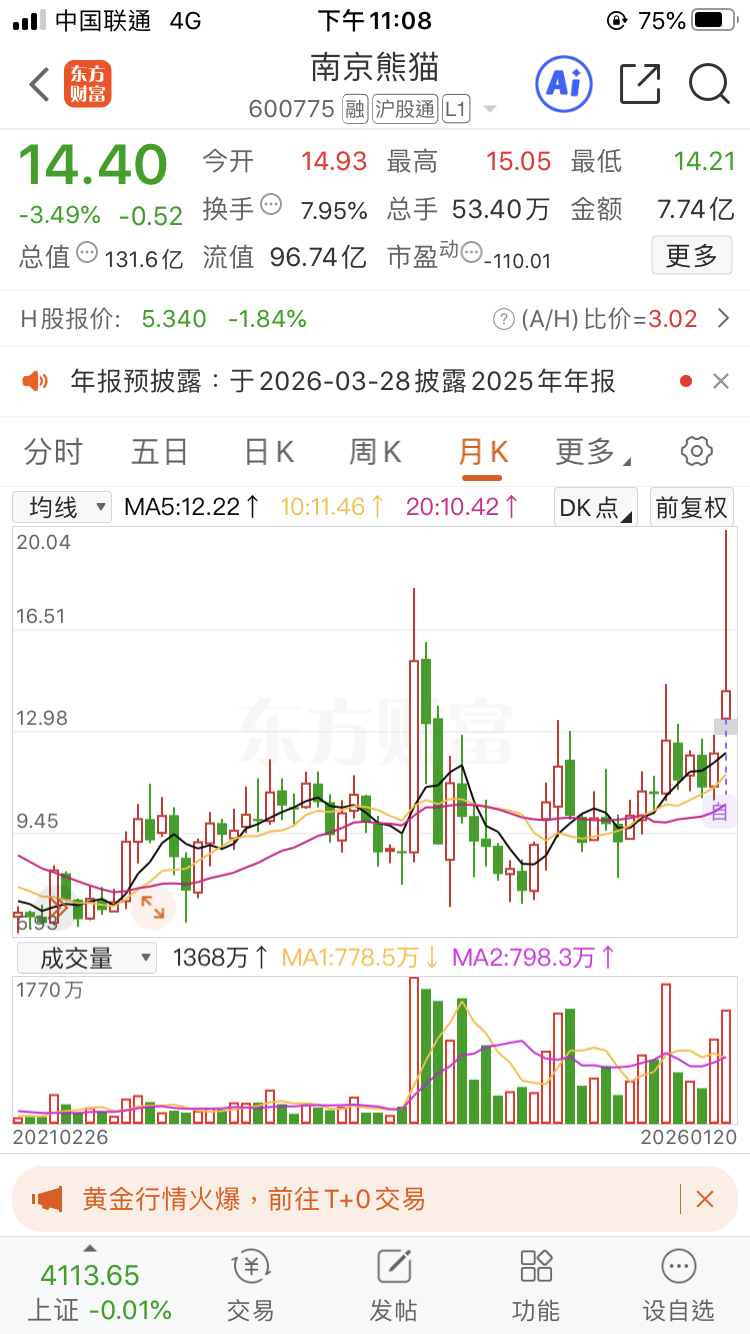 $南京熊猫(SH600775)$ 走势不错 图形很好看。冲天炮。