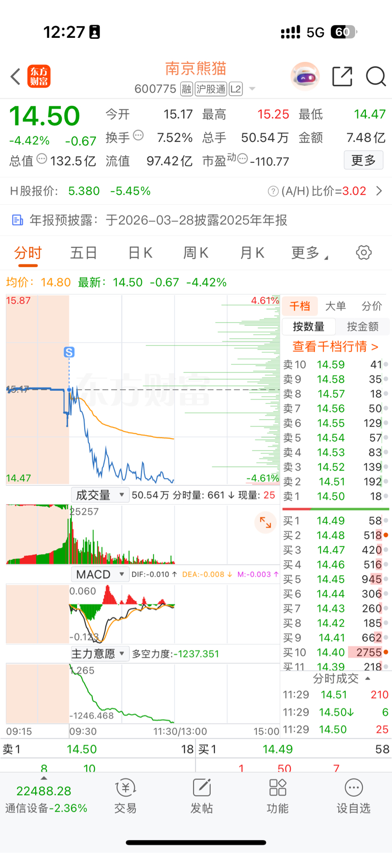 $南京熊猫(SH600775)$ 实在是没办法先撤吧