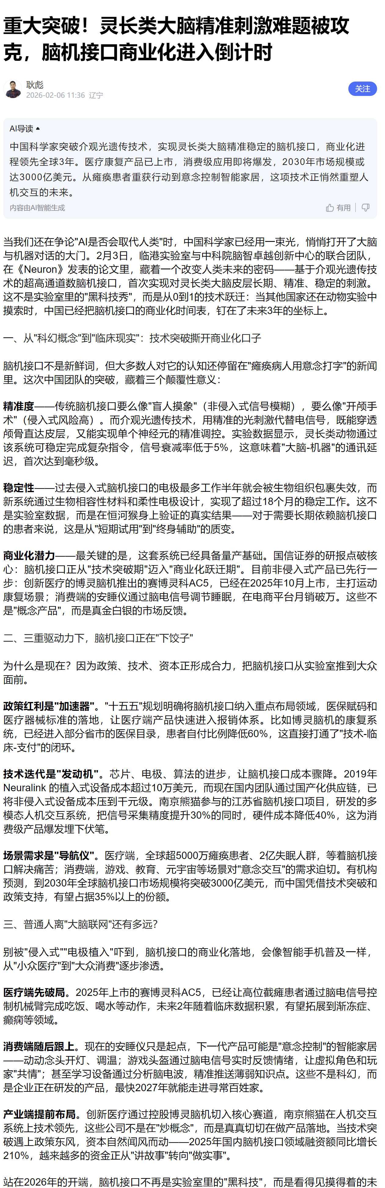 重大突破!灵长类大脑精准刺激难题被攻克,脑机接口商业化进入倒计时
