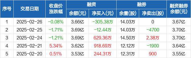 东方通信:融资净偿还305.38万元,融资余额3.66亿元(02-26)