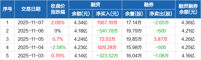 东方通信:融资净买入1567.1万元,融资余额4.34亿元(11-07)