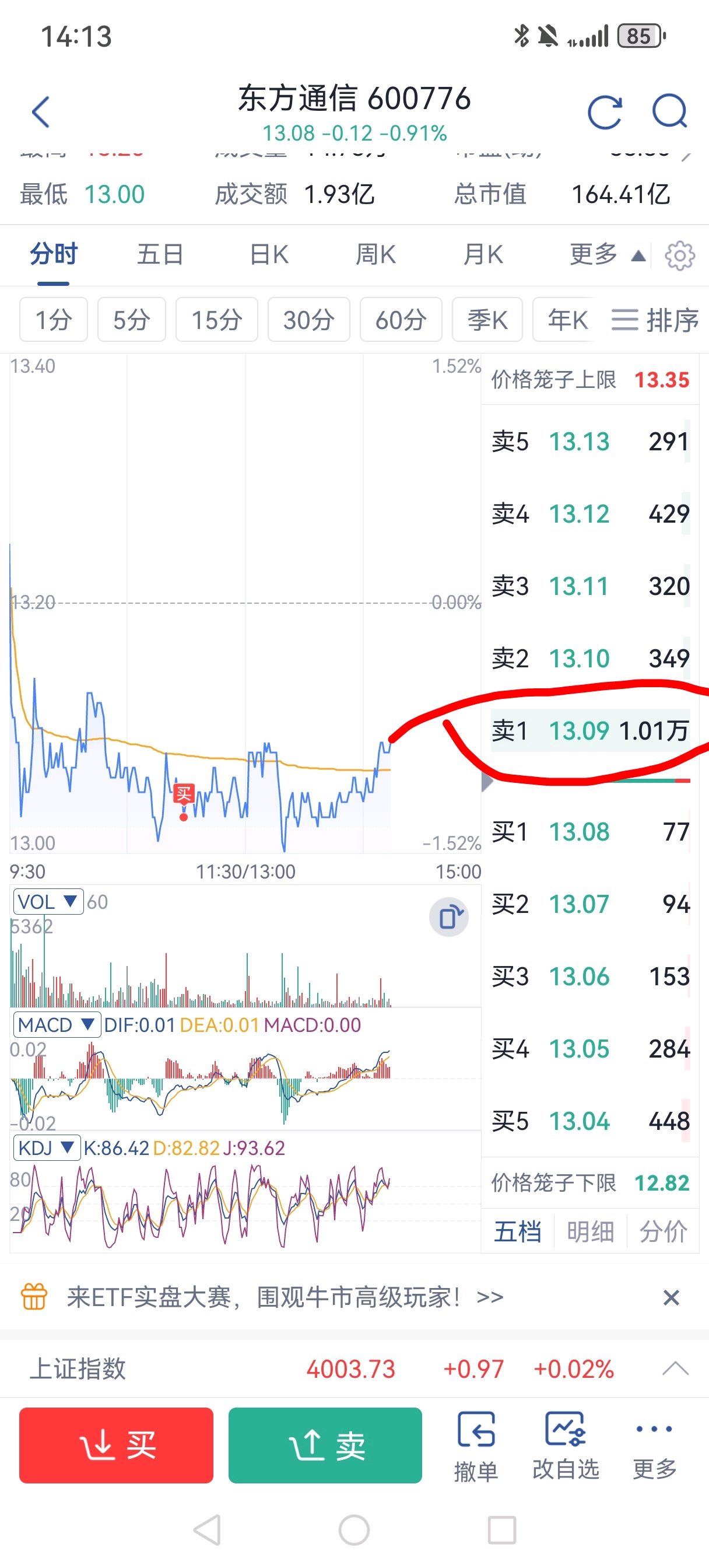 $东方通信(SH600776)$ 的总是有人在压价。