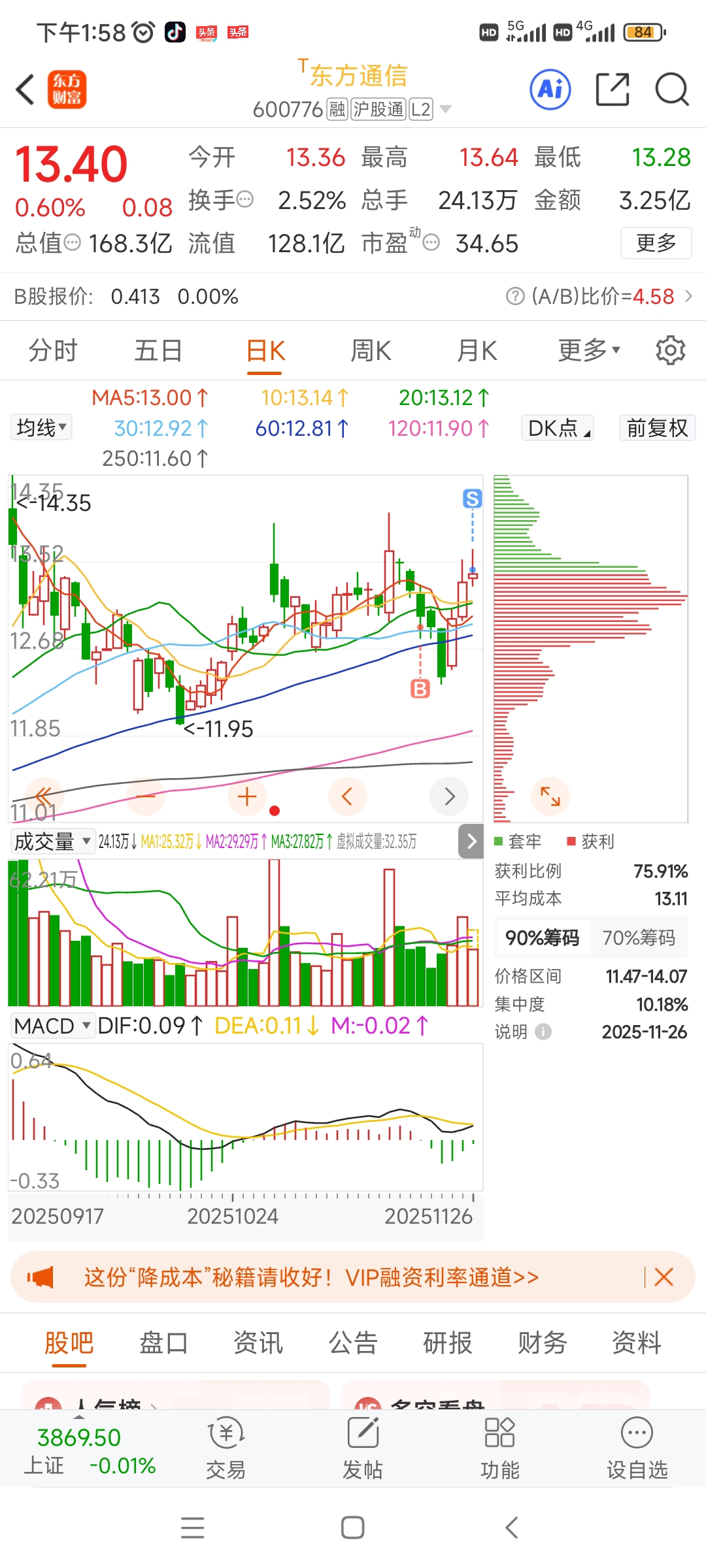 $东方通信(SH600776)$ 抄底还是不能急,才挣这么点