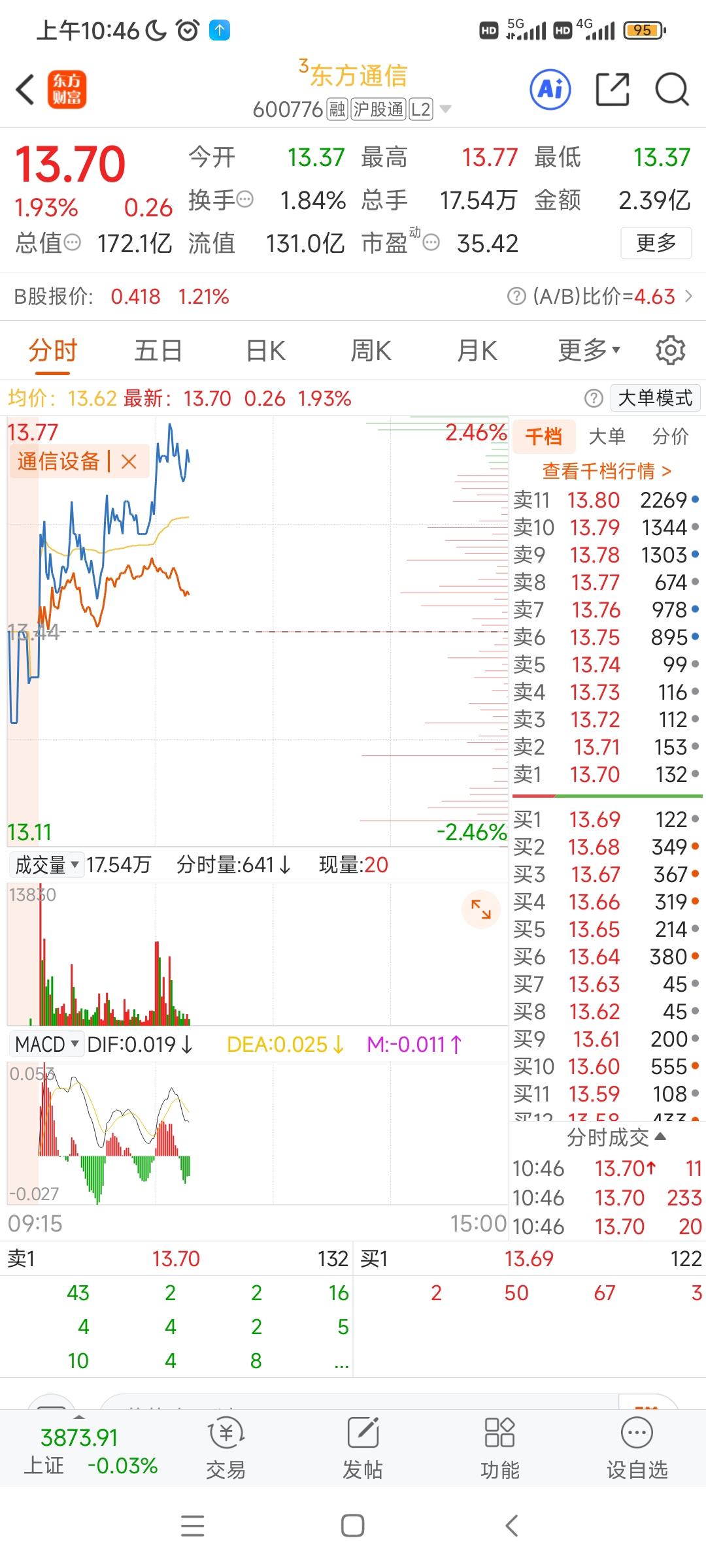 $东方通信(SH600776)$ 完全脱离板块了,居然还想着做踢,你不卖飞谁卖飞