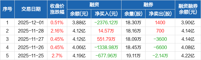 东方通信:融资净偿还2376.12万元,融资余额3.88亿元(12-01)