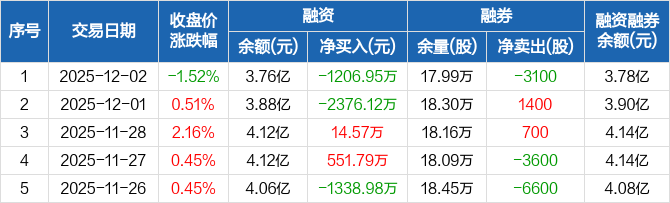 东方通信:融资净偿还1206.95万元,融资余额3.76亿元(12-02)