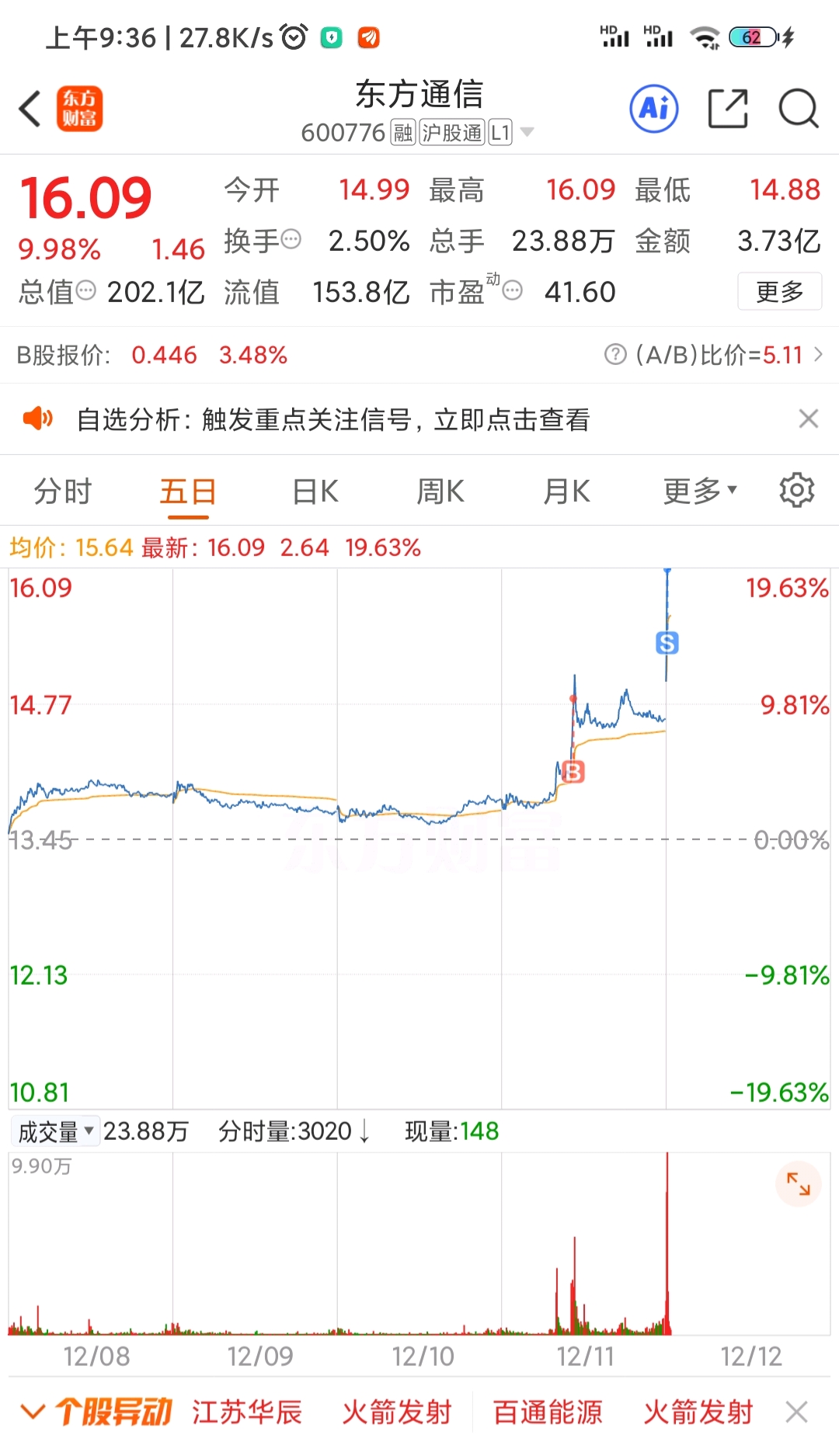 $东方通信(SH600776)$ 谢谢主力,卖了点。