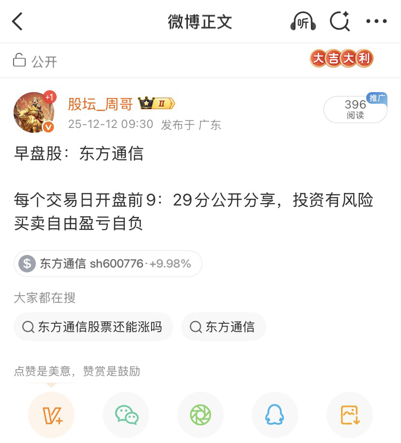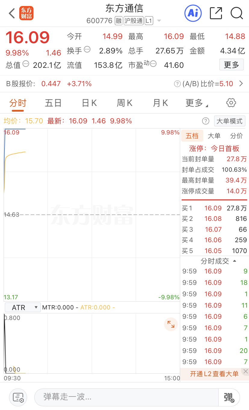 早盘股东方通信快速涨停,恭喜介入的铁粉些收获涨停板点赞点起来
