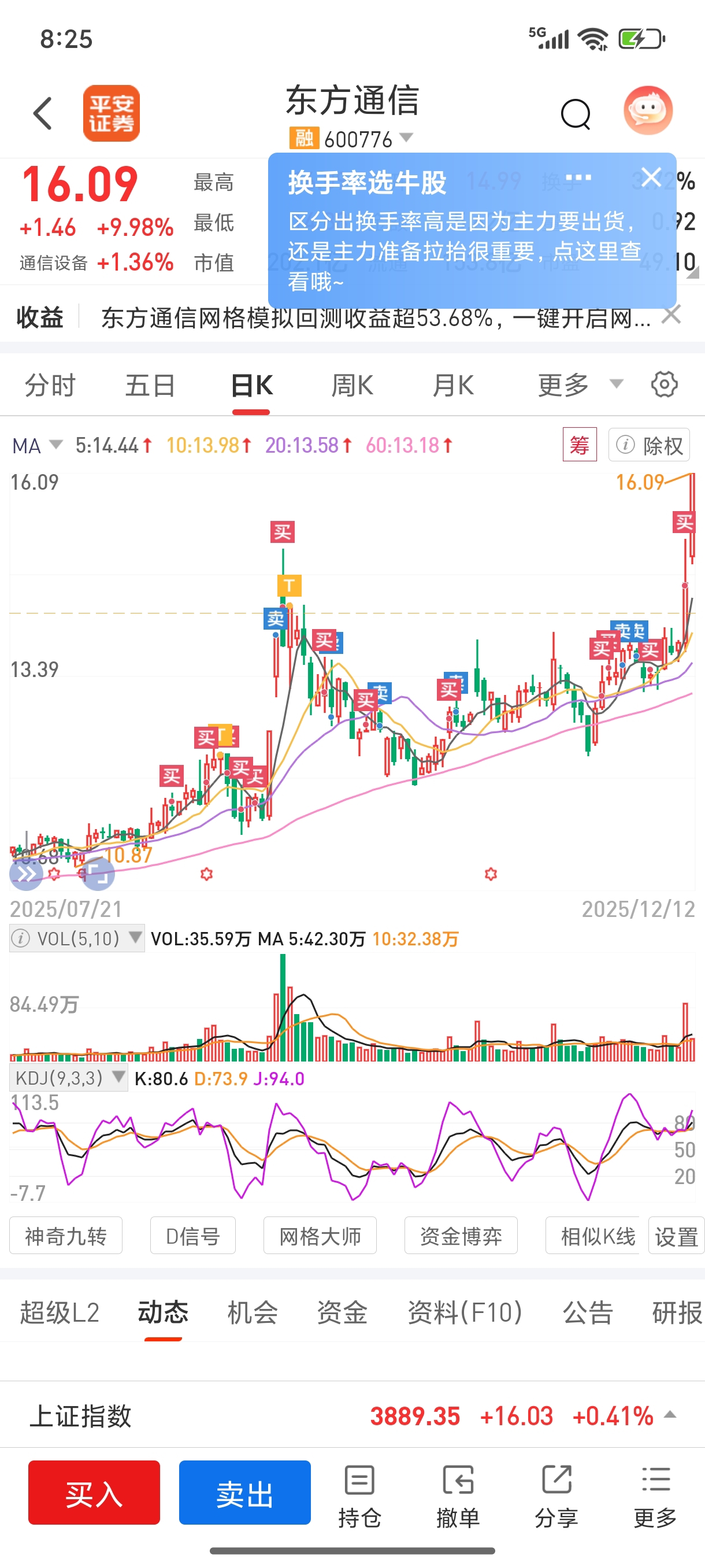$东方通信(SH600776)$ 王者归来!!!!希望能像去年的上海电气。第二个板才抢板进的。吃了3倍大肉。这次东方通信做T陪伴近百日。上周四拉升突破,预判会加速,割了所有的票腾出资金,唆哈买进东方通信加满仓。周五从第一个板吃,希望是预期的王者归来,莫负我近百日不离不弃的陪伴守候!!!不期待连多少板,就希望从今起涨不停!!!!
