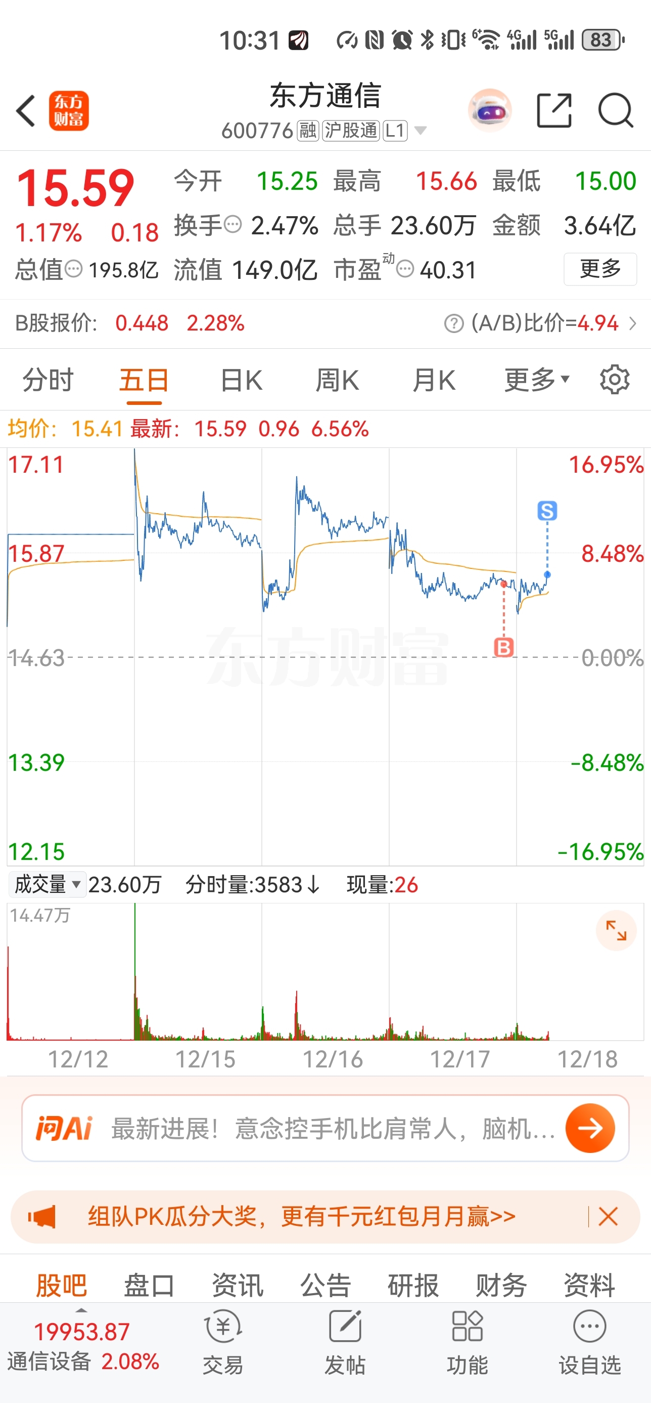 $东方通信(SH600776)$ 走了,各位,留下的发财,没有达到预期