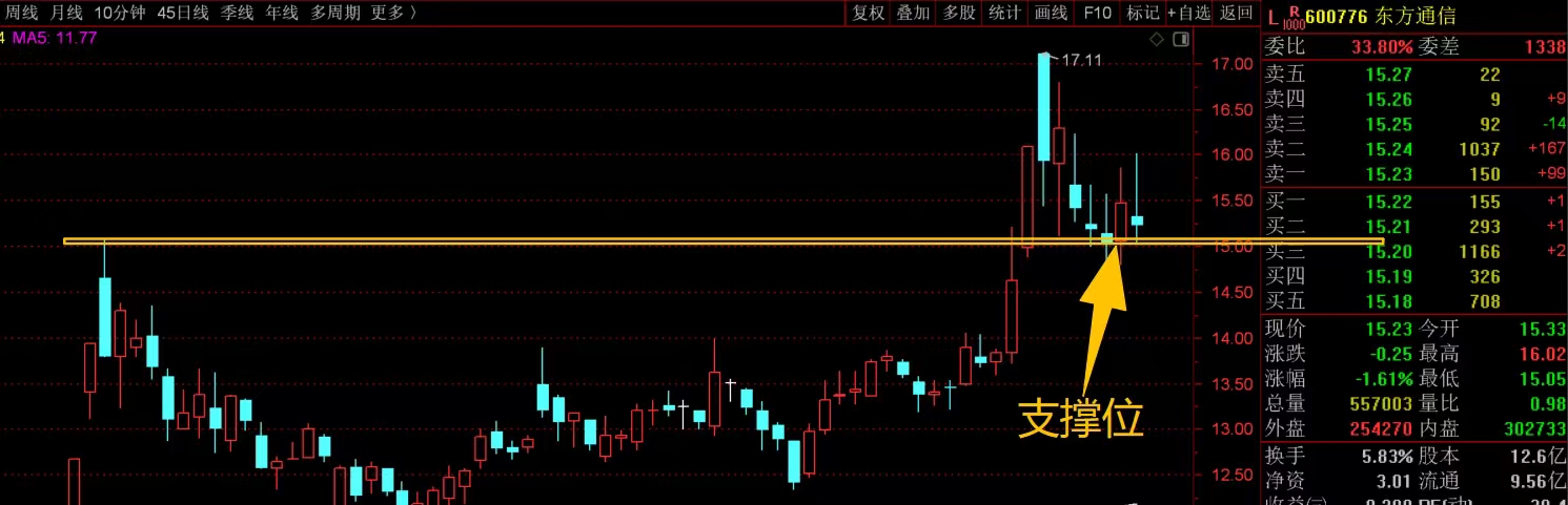 $东方通信(SH600776)$ 近期趋势走得不错,连续拉升后,这里主要是看回落下来,脚底横线位置的支撑情况,能稳住问题就不大,继续震荡看涨,但有效跌破就要注意回落风险了,需要控制仓位应对。#复盘记录# #炒股日记#