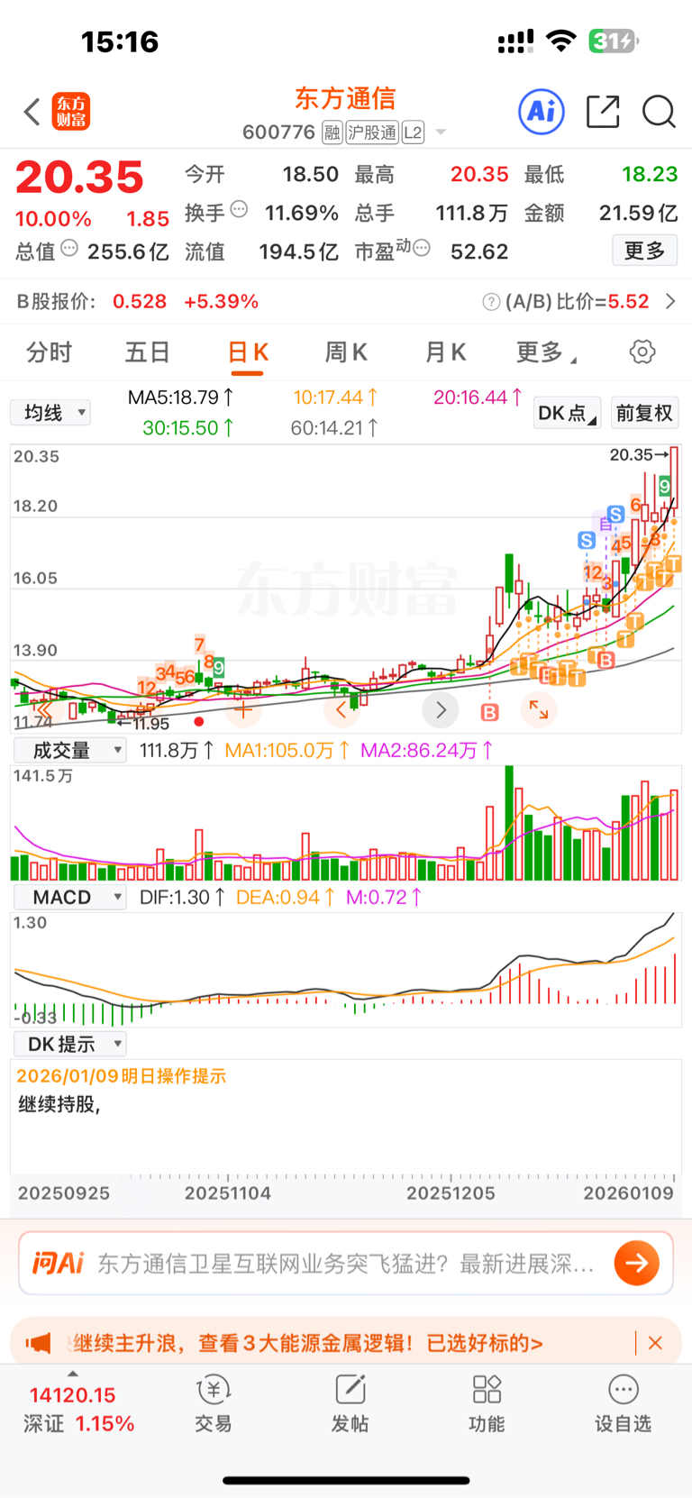 $东方通信(SH600776)$ 不到30不走 每天t一个点也是胜利