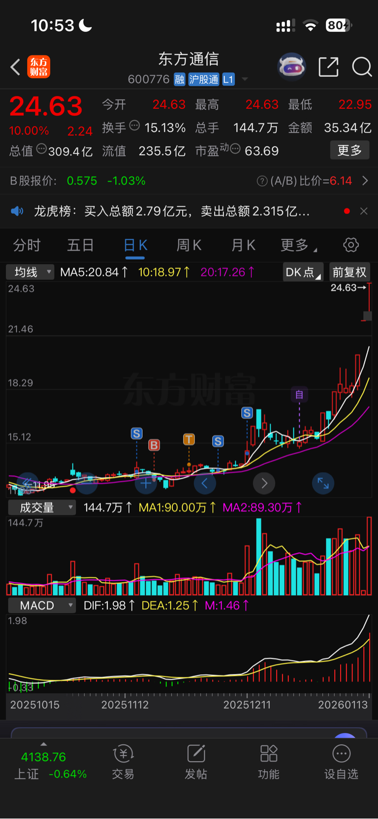 $东方通信(SH600776)$ 拿了一年,完美的错过了你,回来看看,我在卫通吃大面呢