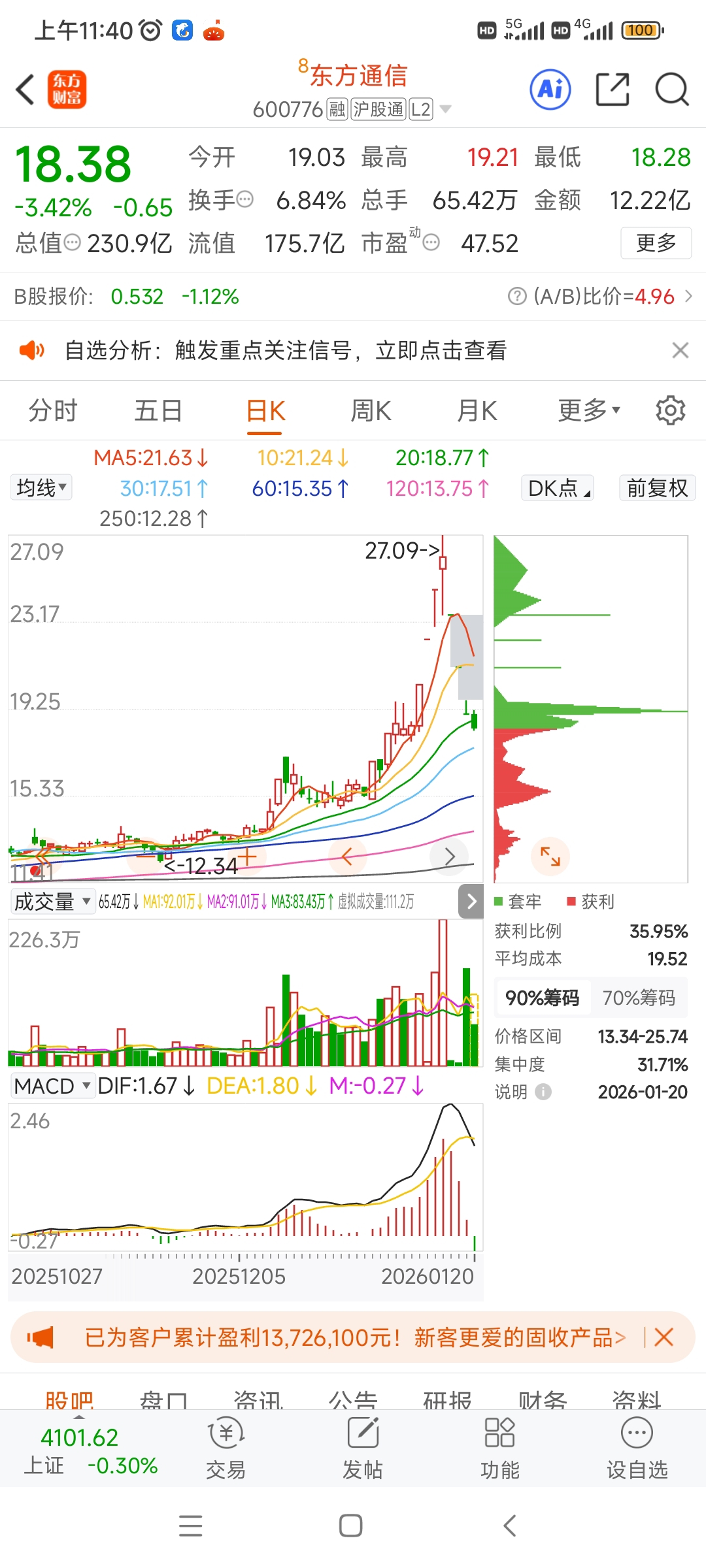 $东方通信(SH600776)$ 明显没止跌,真以为大N字战法那么容易做的?真以为人家夫人操作是让你们跟随吃肉的?五天内能站上5日线我吃